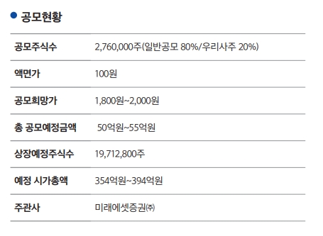 50억~55억 사이로 큰규모의 공모는 아닌것 같습니다.