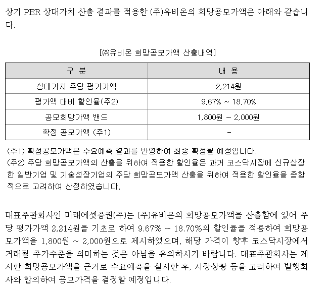유비온 공모일정을 보면
