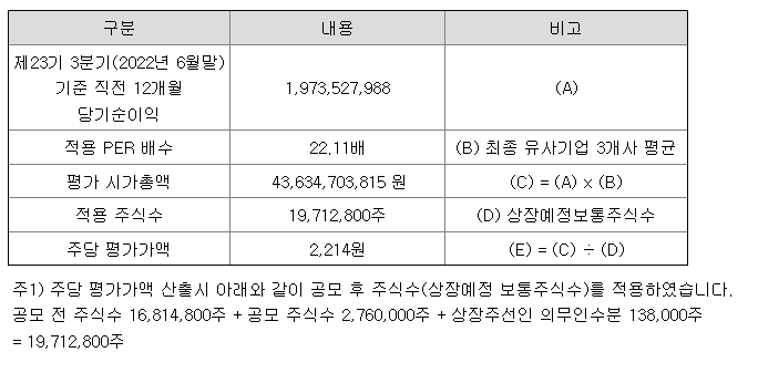 희망 공모가액은 아래와 같습니다.