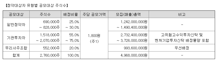 공모 대상 주식수를 보면