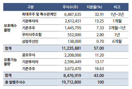 상장 후 보호예수 물량은