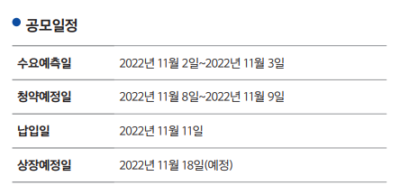 11월 8일 9일 이틀간 청약이 예정되어 있습니다.