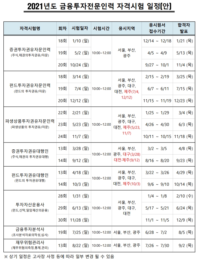 투자자산운용사, 금융투자분석사, 재무위험관리사 등