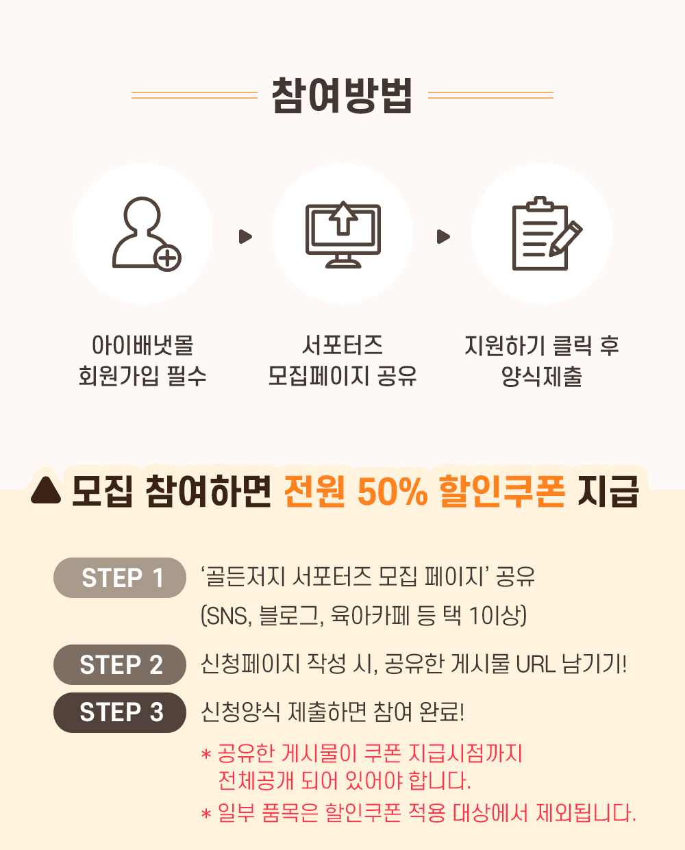 아이배냇몰에서 골든저지 서포터즈 모집도 하고 있으니